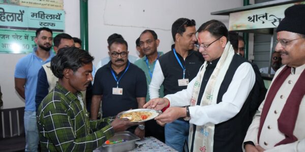 हल्द्वानी में थाल सेवा में शामिल हुए मुख्यमंत्री धामी, जरूरतमंदों को स्वयं परोसा भोजन