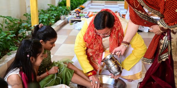 मुख्यमंत्री पुष्कर सिंह धामी ने रामनवमी के पावन अवसर पर मुख्यमंत्री आवास में किया कन्या पूजन, प्रदेश की खुशहाली की कामना
