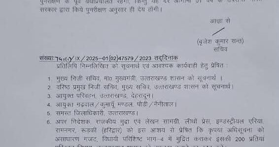 सचिव दीपेंद्र कुमार चौघरी द्वारा 11 नवंबर को प्रबंध निदेशक, उत्तराखंड पूर्व सैनिक कल्याण निगम (UPNL) को भेजे गए पत्र में कहा गया है कि जो कर्मचारी हड़ताल के कारण अपनी ड्यूटी पर उपस्थित नहीं हो रहे हैं, उनकी उपस्थिति को निलंबित अथवा अनुपस्थिति के रूप…