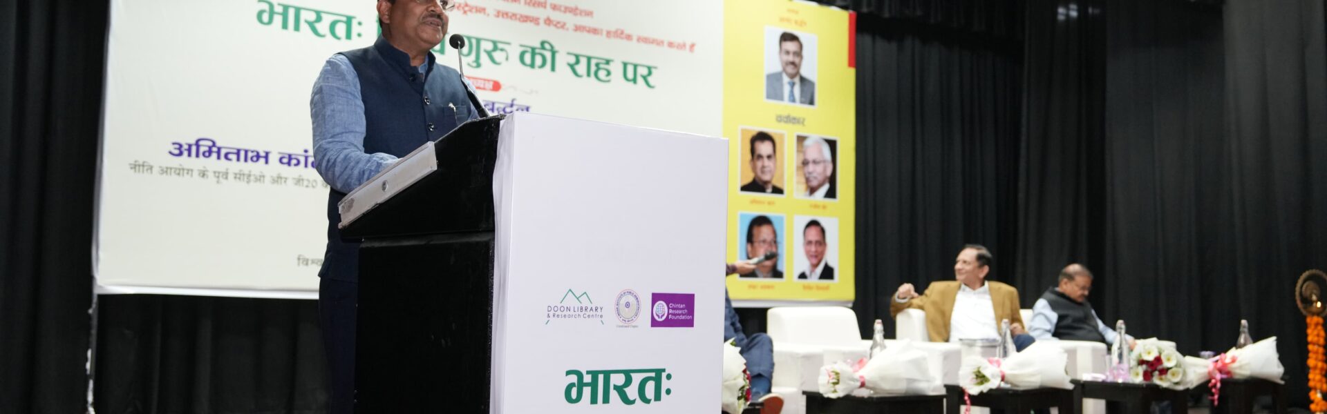 देहरादून, सर्वे चौक स्थित ऑडिटोरियम में दून पुस्तकालय एवं शोध केंद्र, चिंतन रिसर्च फाउंडेशन तथा Indian Institute of Public Administration के तत्वावधान में “भारत: विश्व गुरु की राह पर” विषय पर एक उच्चस्तरीय विचार गोष्ठी का आयोजन किया गया।