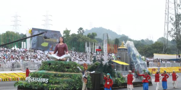 ‘स्टैच्यू ऑफ यूनिटी‘ के सम्मुख एकता परेड में उत्तराखंड की झांकी में राज्य के विभिन्न रूप-रंगों की छटा बिखरी