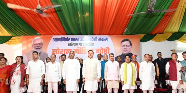 मुख्यमंत्री पुष्कर सिंह धामी ने हल्द्वानी में की सोशल मीडिया पदाधिकारियों के साथ बैठक स्वदेशी अपनाओ अभियान को जन-जन तक पहुंचाने का किया आह्वान मुख्यमंत्री पुष्कर सिंह धामी सोमवार को हल्द्वानी पहुंचे, जहां उन्होंने भारतीय जनता पार्टी के सोशल मीडिया…