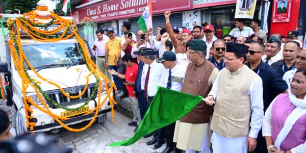 डॉ० भीमराव अम्बेडकर समाज कल्याण बहुउद्देशीय शिविर रथ को हरी झंडी दिखाकर सीएम धामी ने किया रवाना