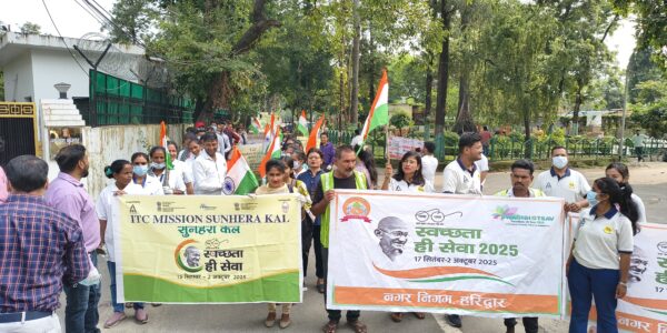 स्वच्छोत्सव 2025 : हरिद्वार में गंगा घाटों से गाँव तक गूंजा ‘स्वच्छता ही सेवा’ का दिव्य संदेश नगर निगम से निकली विराट स्वच्छता रैली, नगर आयुक्त ने दिखाई हरी झंडी – आईटीसी मिशन सुनहरा कल बना आंदोलन का अगुआ पावन…