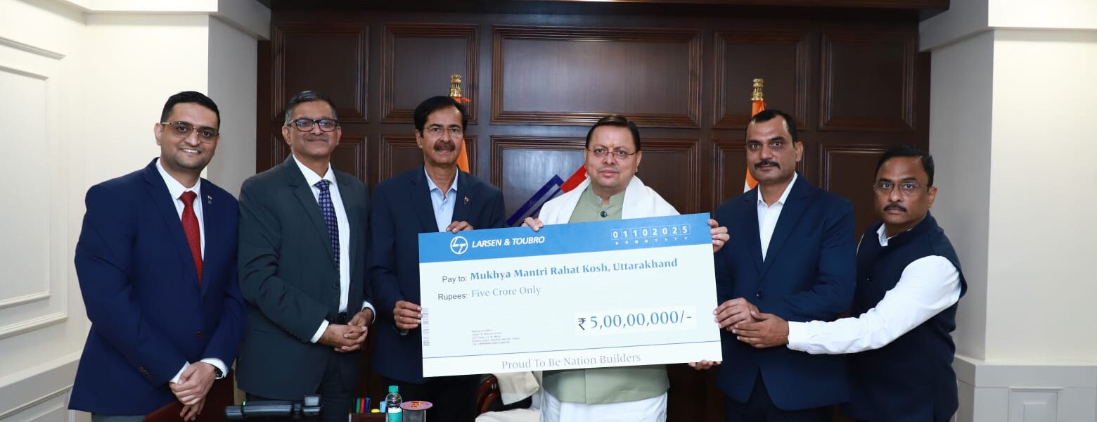 मुख्यमंत्री पुष्कर सिंह धामी ने एल.एंड.टी. के इस सराहनीय सहयोग के लिए कंपनी के प्रतिनिधियों का आभार व्यक्त करते हुए कहा कि संकट की घड़ी में कॉर्पोरेट सेक्टर का यह योगदान राज्य सरकार के लिए बड़ी सहायता साबित होगा। उन्होंने कहा कि राज्य सरकार लगातार आपदा प्रभावित क्षेत्रों में राहत, पुनर्वास एवं पुनर्निर्माण के कार्यों को प्राथमिकता के साथ कर रही है। ऐसे में निजी क्षेत्र की सहभागिता से इन कार्यों में और तेजी आएगी तथा प्रभावित लोगों को शीघ्र राहत पहुंचाई जा सकेगी।