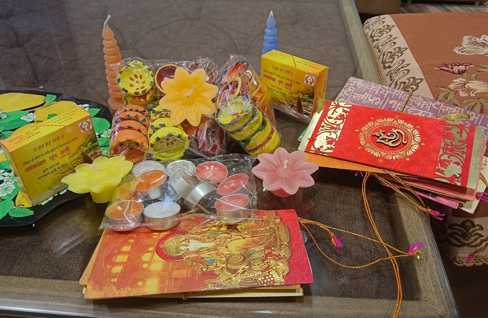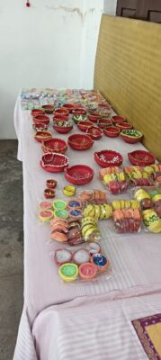 फूलों से सुगंधित धूपबत्तियां और अगरबत्तियां,गोबर और मिट्टी से निर्मित पर्यावरण-मित्र दिये,और पुनर्चक्रित सामग्री से बनी ऐंपण पूजा थालियां और सजावटी वस्तुएं,
