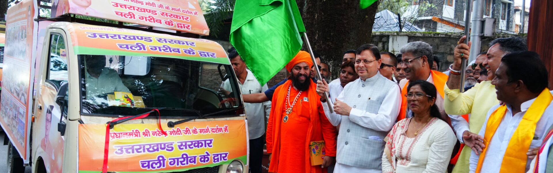 डॉ० भीमराव अम्बेडकर समाज कल्याण बहुउद्देशीय शिविर रथ को हरी झंडी दिखाकर सीएम धामी ने किया रवाना