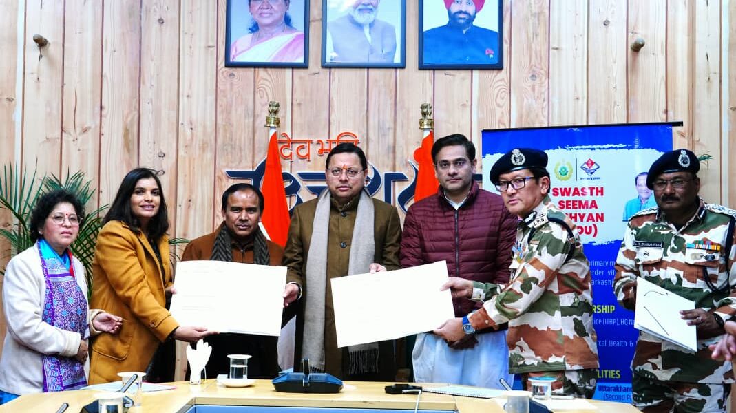 मुख्यमंत्री पुष्कर सिंह धामी की उपस्थिति में आज मुख्यमंत्री आवास में उत्तराखंड शासन एवं भारत–तिब्बत सीमा पुलिस (आईटीबीपी) के मध्य स्वस्थ सीमा अभियान के अंतर्गत एक महत्वपूर्ण समझौता ज्ञापन (MoU) पर हस्ताक्षर किए गए। इस अवसर पर स्वास्थ्य मंत्री डॉ. धन सिंह रावत एवं कैबिनेट मंत्री सौरभ बहुगुणा भी उपस्थित रहे।